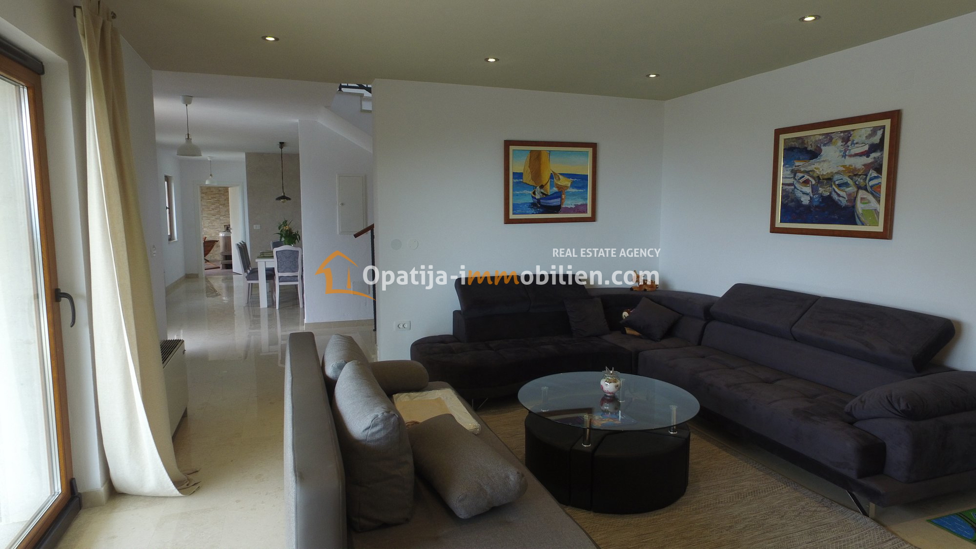 The villa is located in the Učka Nature Park with a beautiful breathtaking sea view, where it offers peace, quiet and relaxation in nature. On the ground floor there is a bright living room as well as a charming kitchen with a dining area. A few steps away there is a wellness area, with a sauna and a jacuzzi. All bedrooms are air conditioned, have a TV and are located on the first floor. The villa also has an infinity pool of 40 m2 from which you can enjoy amazing views of the surroundings. The villa is equipped with table tennis, mini golf and a basketball court.